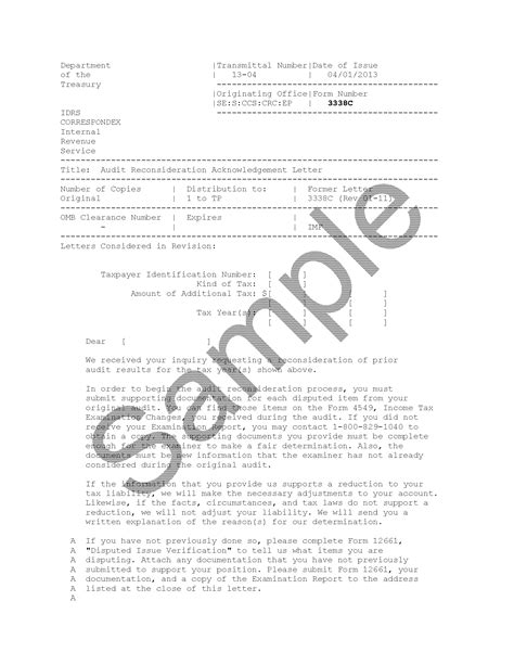 Online PDF irs eic reconsideration sample letter Doc Open Library